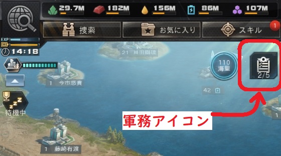 軍務は週間任務(ウィークリー)月曜更新。7日間で30個達成することが目標で、指揮官レベルによって内容が変わってくる。