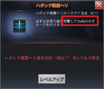 前レベルの兵器【ハボック戦闘ヘリホークアイ改造】または【ハボック戦闘ヘリラプター改造】の解放が必要