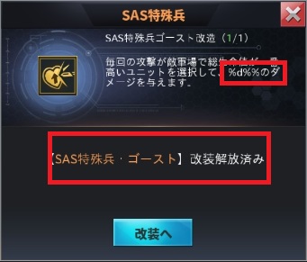 前レベルの兵器【SAS特殊兵ホークアイ改造】または【SAS特殊兵ゴースト改造】の解放が必要