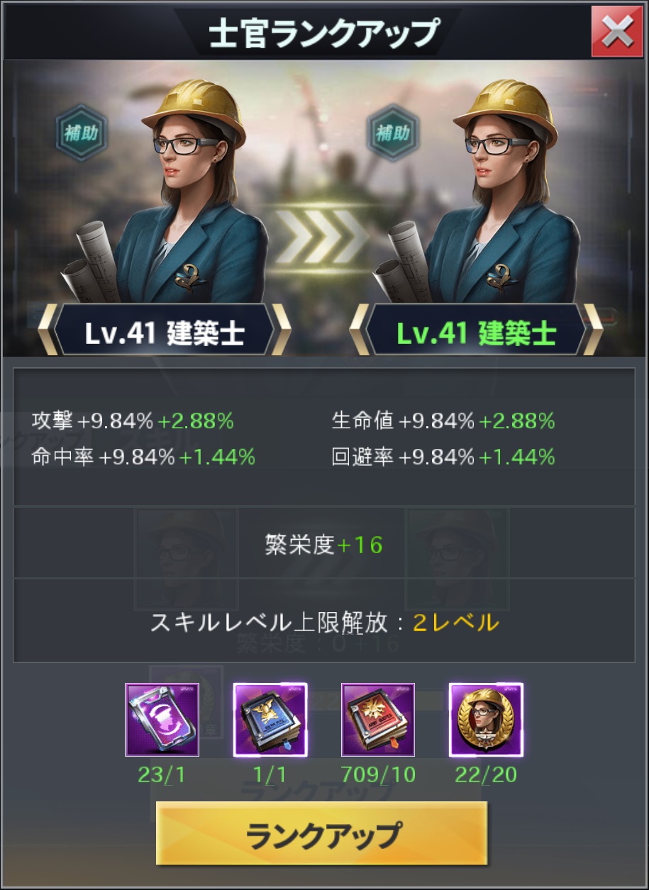 | 6 | 士官が赤品質に到達 | 士官バッジx | |